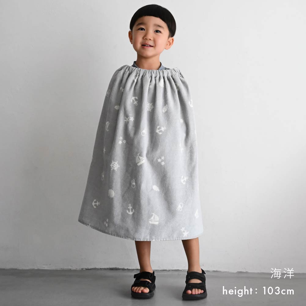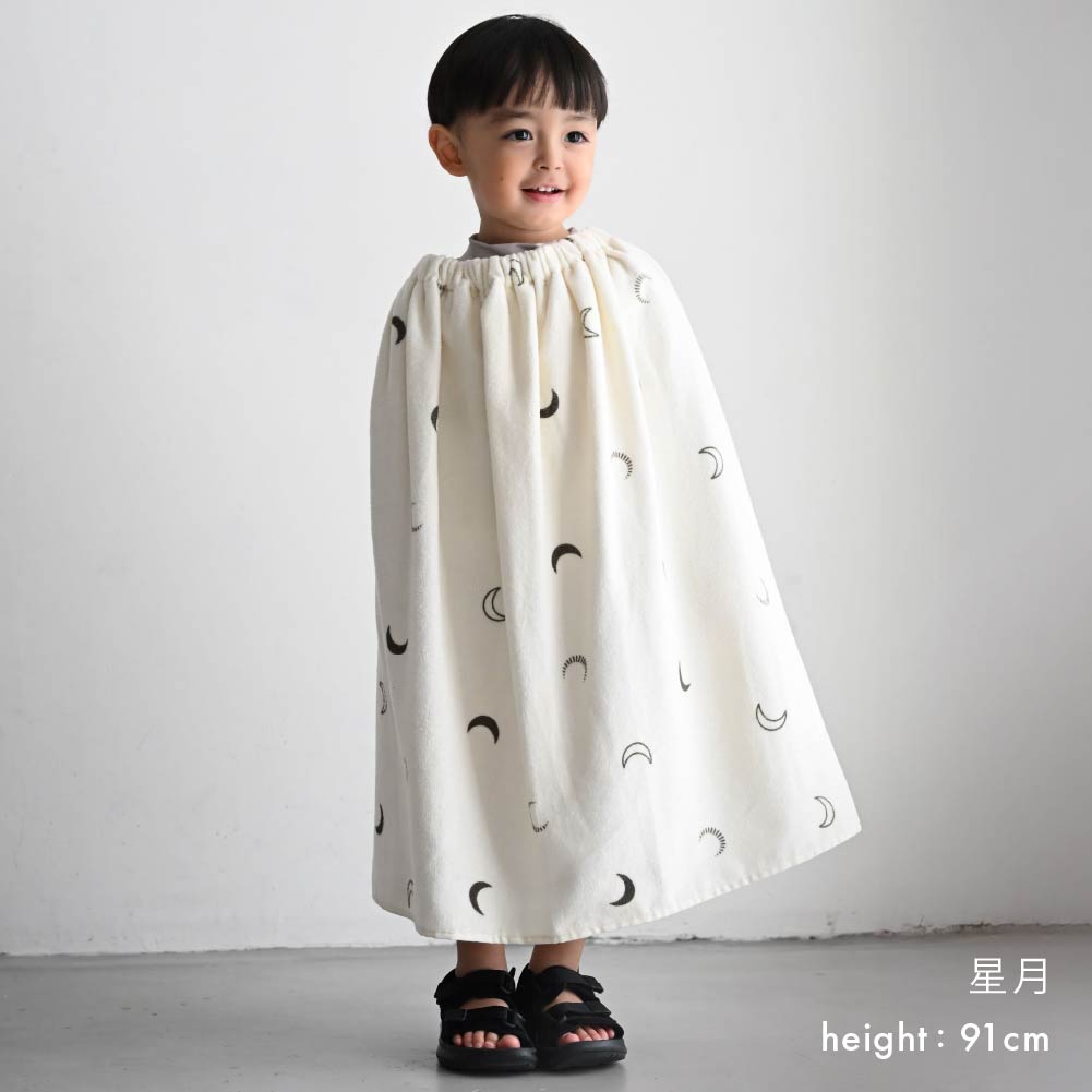 · 連帽斗篷設計:洗完澡或戲水後一披即可,防止頭部受涼,同時解放雙手。